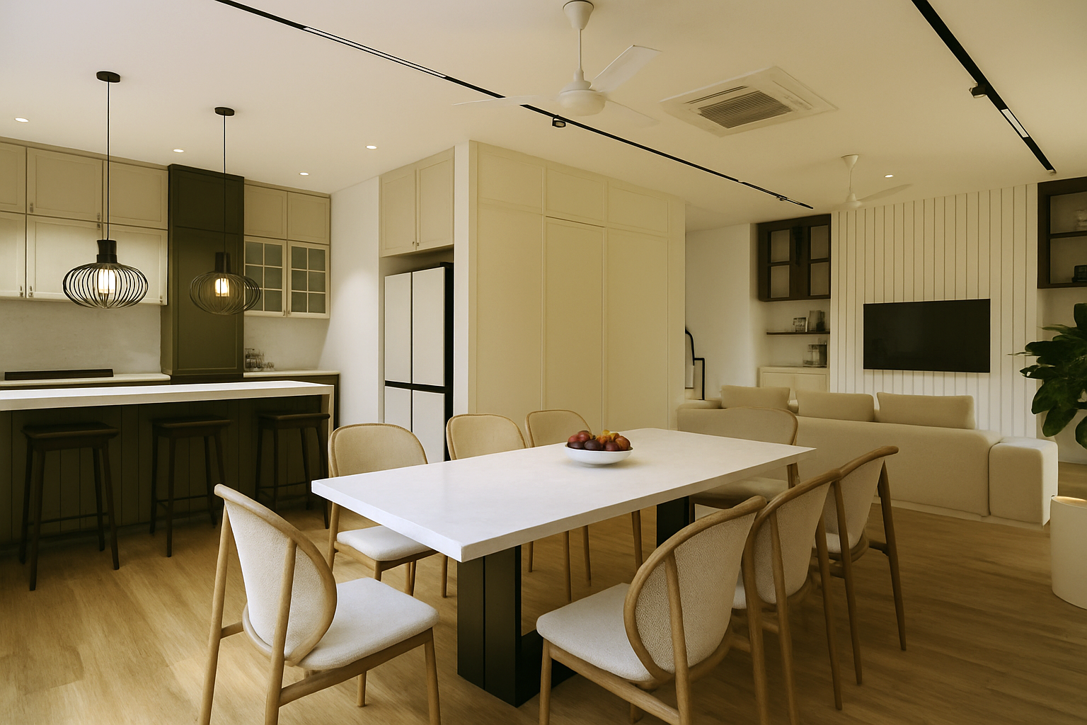 This project called for interior design fitout of its existing end lot house at Elemen Residence at Tropicana Aman. This is a cohesive and inviting contemporary interior design that blends Modern Minimalist principles with touches of Bohemian/Natural warmth. The overall aesthetic is bright, airy, and grounded by natural textures and a controlled color palette. While the side terrace offers an unfettered, open embrace of the garden, the interior retreats into the timeless, textured cozy environment.
